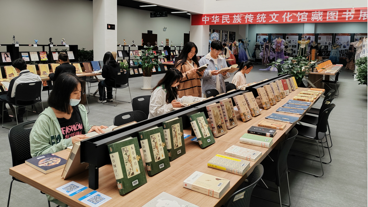 本次展览共展出馆藏图书400余册,内容涵盖哲学、曲艺、书法、民族服饰、饮食文化、民俗文化等,吸引了大批师生前往观展、阅读。