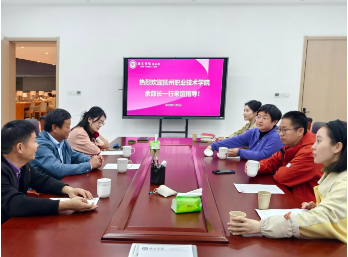 11月3日下午,抚州职业技术学院党委委员、宣统部部长余昌木一行莅临赣东学院图书馆,就馆内功能布局、空间设计与现代化建设进行专题调研。该馆负责人及相关部门同仁给予了热情接待。