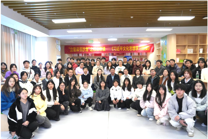 12月17日下午,由江西环境工程职业学院图书馆联合工会、团委、党委宣传部主办的“立雪读书沙龙”之校长带读《习近平文化思想学习纲要》活动,在图书馆二楼红色书苑举办。学院党委副书记、院长廖忠明出席并主讲,师生代表及“感想征集比赛”获奖师生80余人参与。
