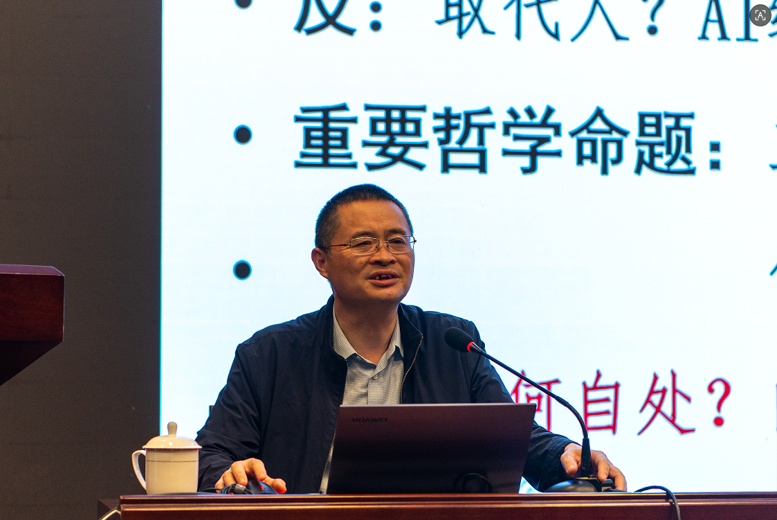 4月15日,宜春学院图书馆第16期“沁湖书屿”读书沙龙活动在科技楼学术报告厅举行。本次讲座以“内与外:AI时代要读两类书、训练两类智能体”为主题,特邀华东交通大学图书馆馆长、孔目湖书院院长石初军先生主讲,160余名师生到场参与。讲座由图书馆馆长易斌主持。